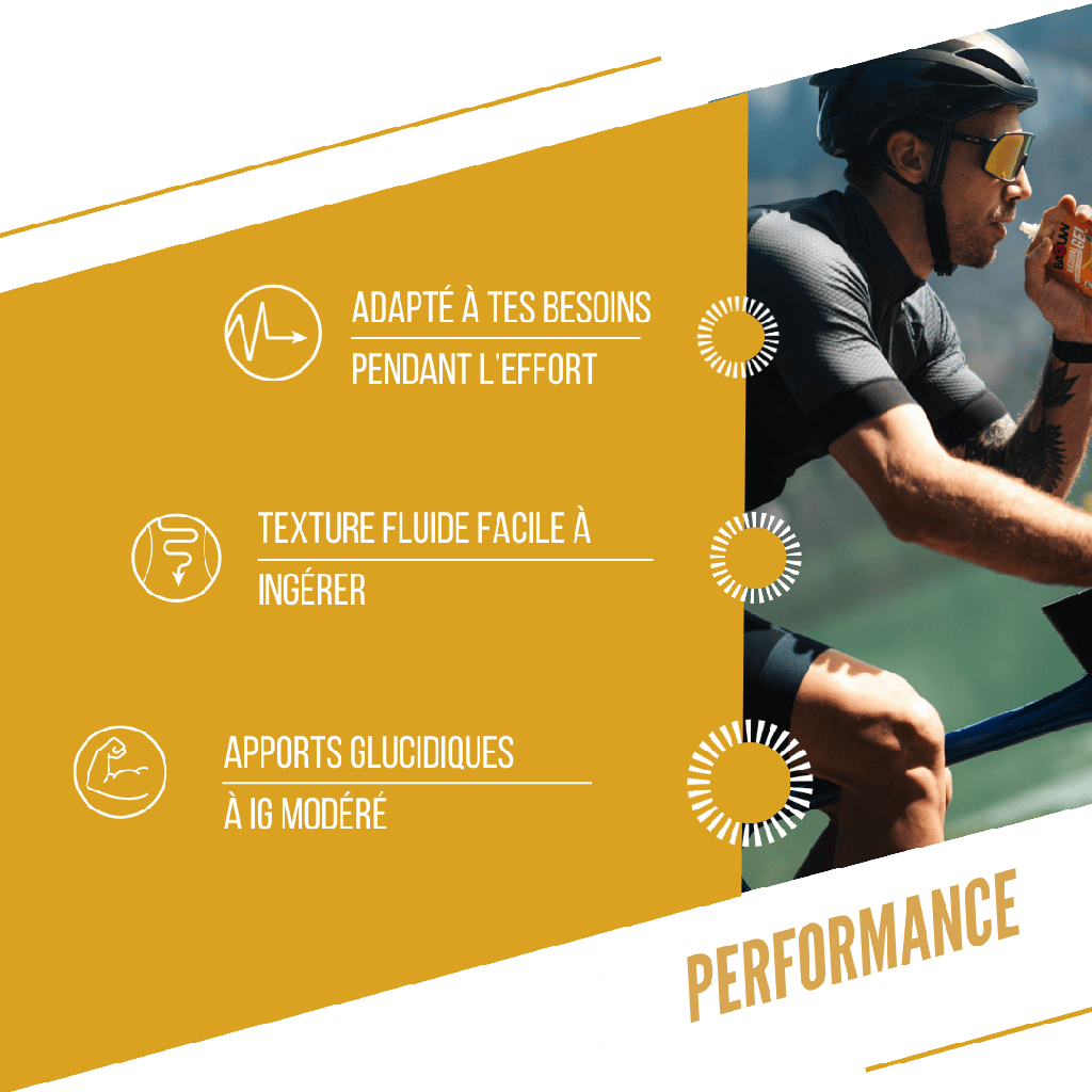 100% organic, rich in fruitthis gel provides natural carbohydrates without glycemic peaks, as well as essential micronutrients (calcium, magnesium, iron, potassium). Its fluid, non-sticky texture avoids the inconvenience of conventional gels. Its resealable bottle can be consumed in several doses, or diluted in 500 ml of water to make an energy drink.