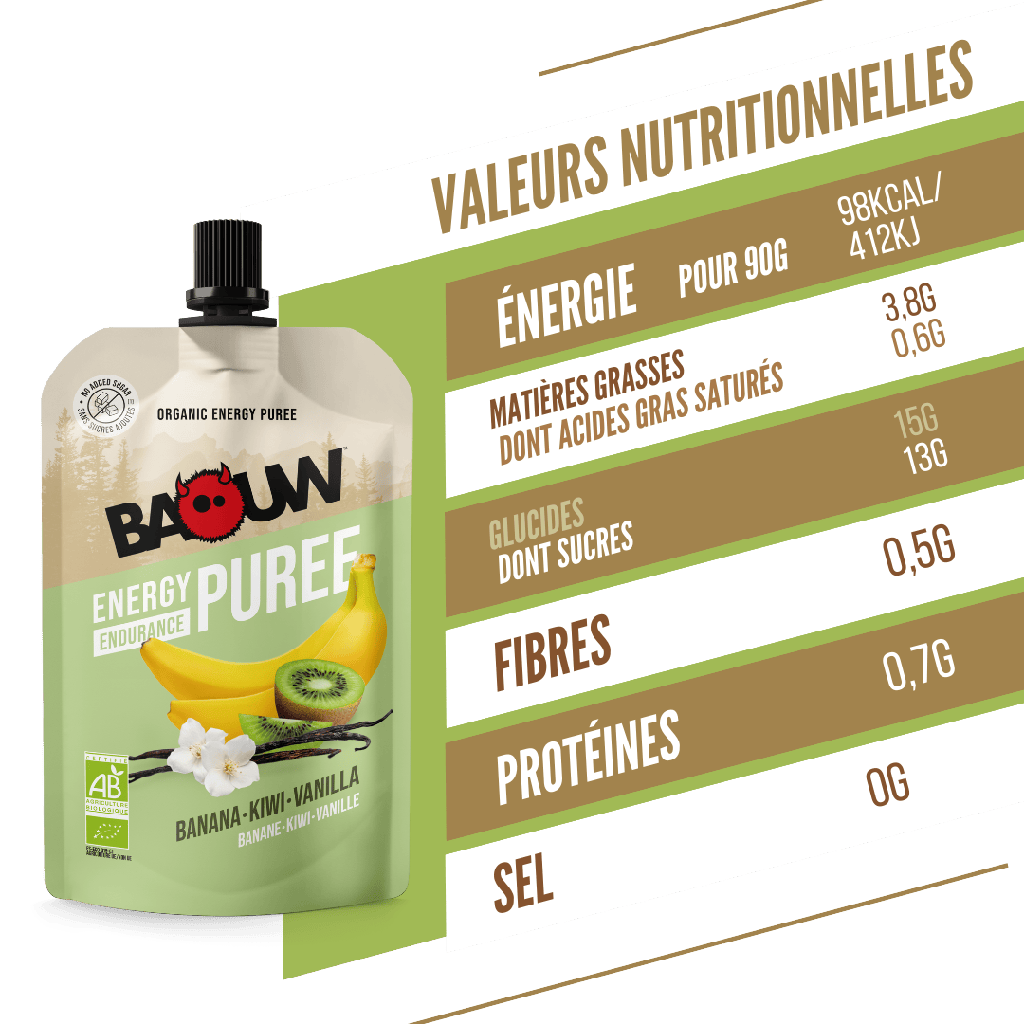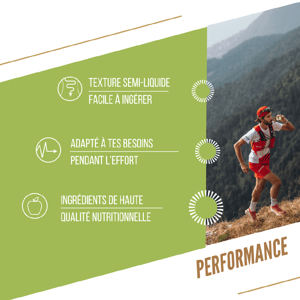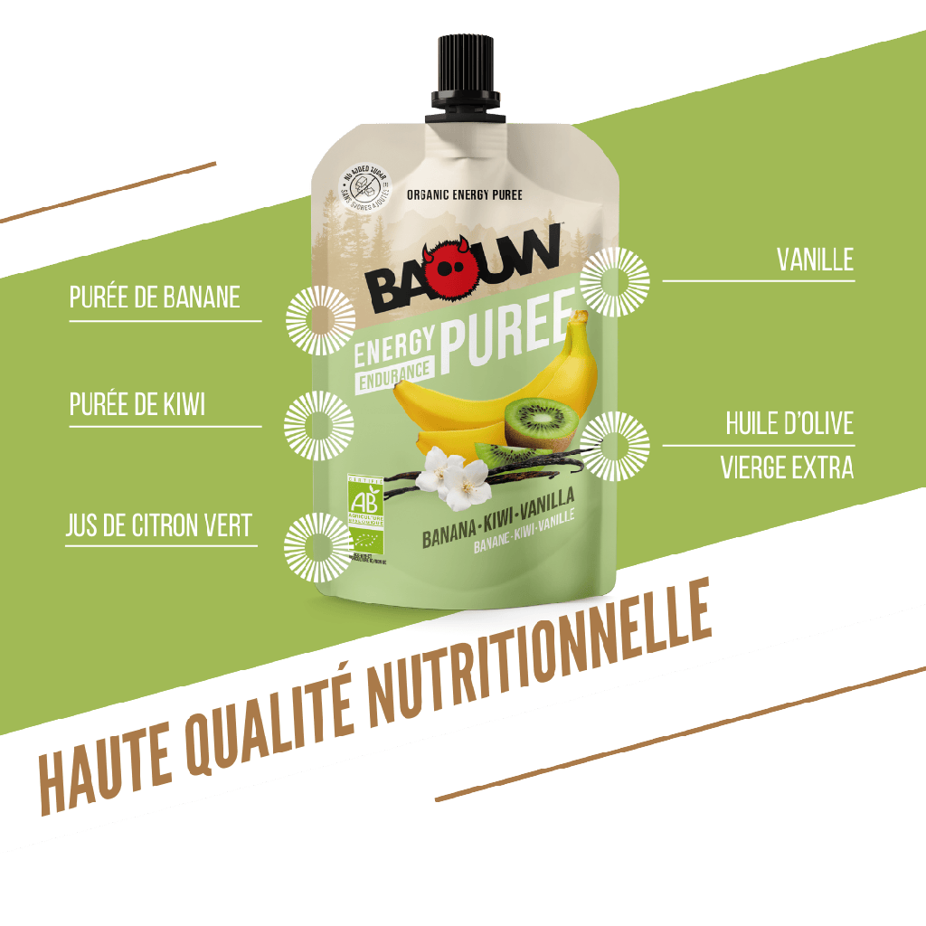 This organic puree is gluten-free, vegan, with no added sugars and a moderate glycemic index, for progressive energy without sluggishness and great digestive comfort during your exercise. The bottle is made from 85% plant-based ingredients (sugar cane), with a resealable cap. Finally, it features compact packaging that's easy to hold and pocket.