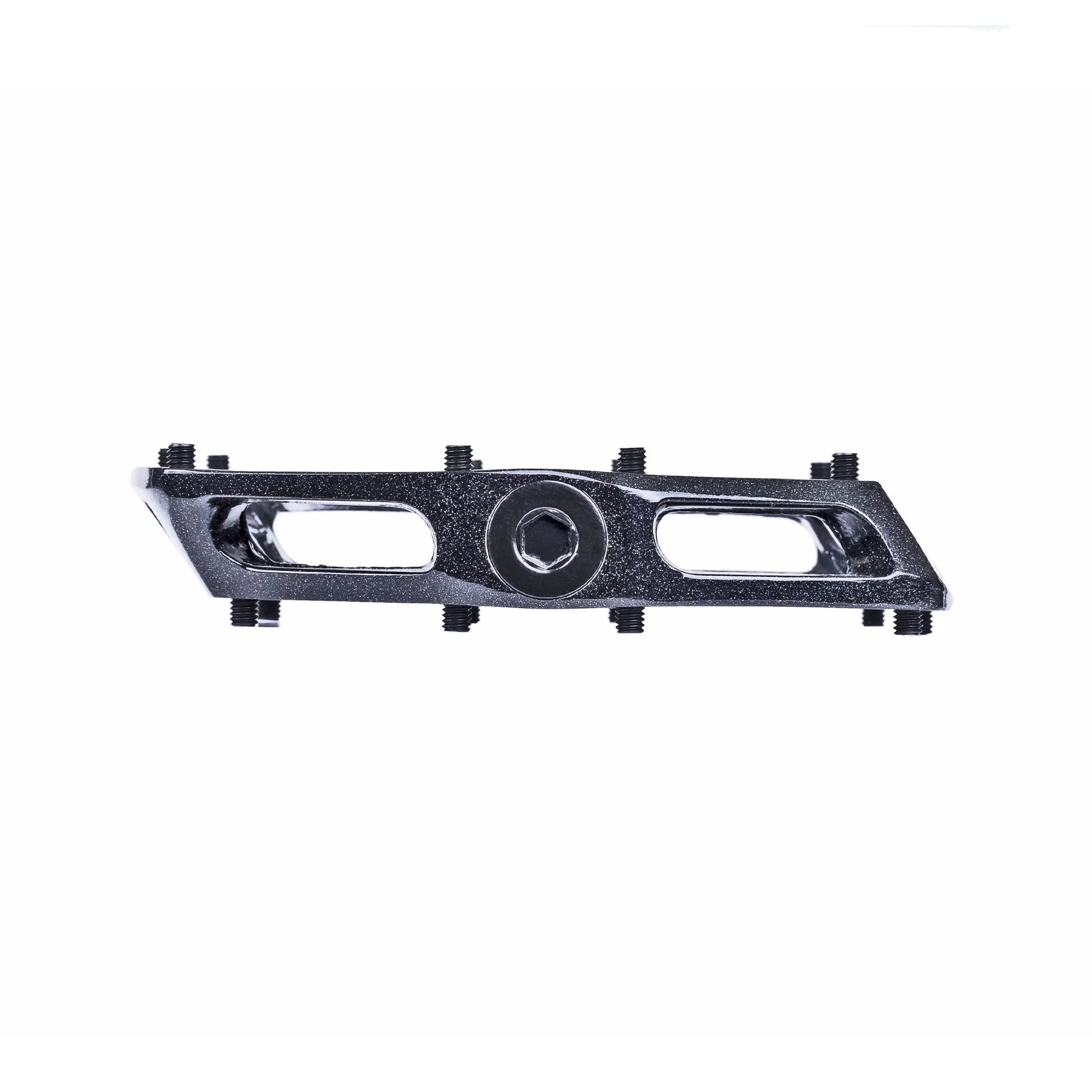 It's built on a thin, concave aluminum base with a 10% increased surface area, resting on a sturdy, easy-care Cro.Mo steel axle. It features 10 easily adjustable and removable pins. This pedal will give you complete satisfaction for regular practice on your favorite committed courses.