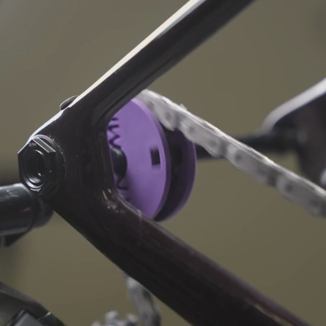 It's easy to use: remove the rear wheel, insert the chain into the through axle and then pass it through the chain groove. So you can maintain your transmission or transport your bike in complete safety.
