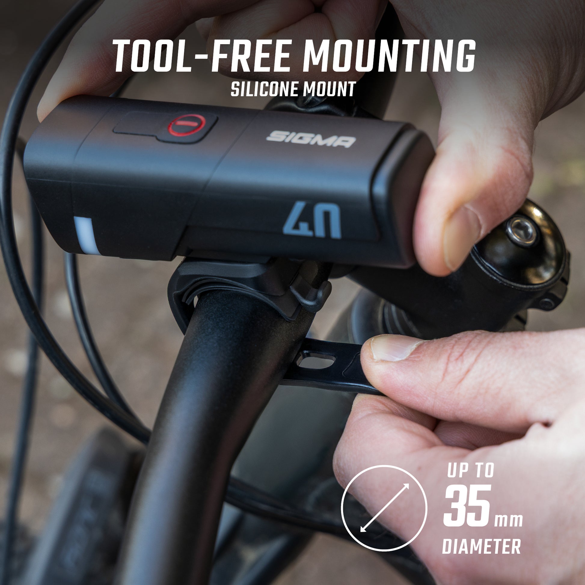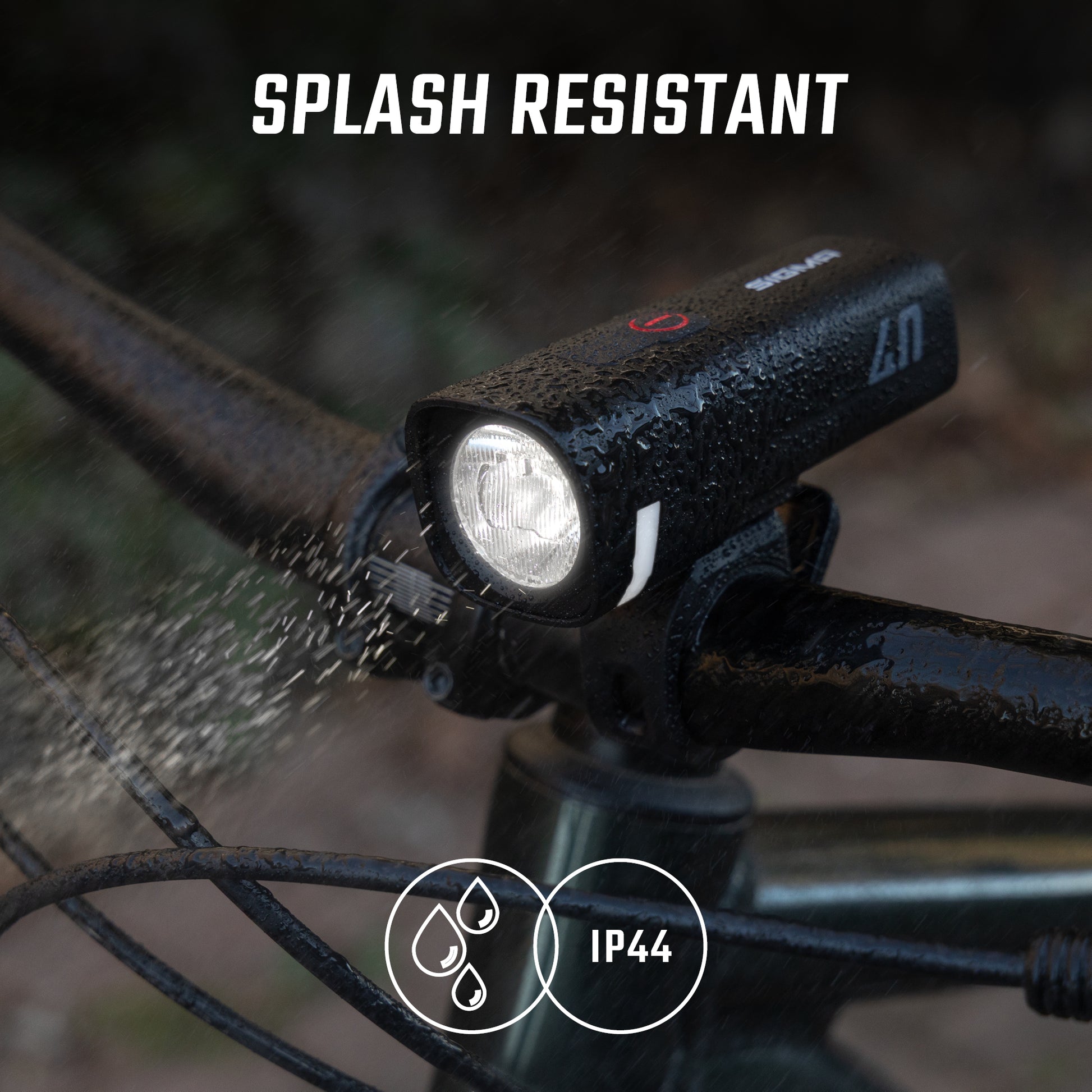Practical and robust, the AURA 40 can be mounted without tools thanks to its 360° adjustable silicone support with Quick Release system. Splash-proof to IP44 standards, it accompanies cyclists in all weathers. Last but not least, its three-level LED indicator lets you check battery status at any time.