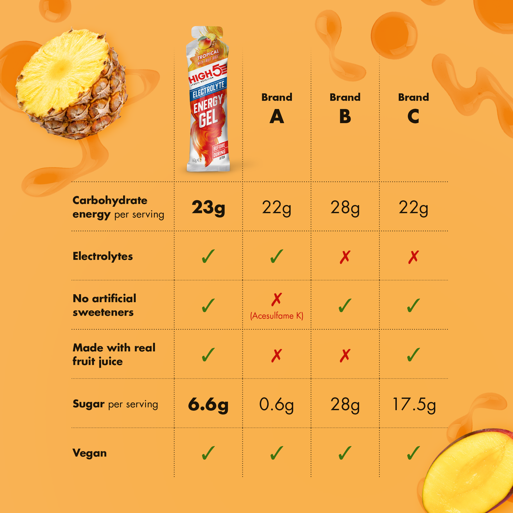 Visit Energy Gel HIGH5 ENERGY ELECTROLYTE is a fruity energy concentrate, ideal for boosting your performance during exercise. Enriched with electrolytes, it effectively compensates for mineral losses due to perspiration, while rapidly recharging your carbohydrate reserves.