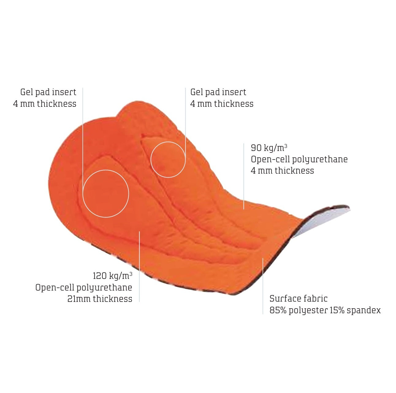 Padding: FREEDOM EVO GEL pad for optimum comfort and reinforced groin support thanks to gel inserts, soft microfiber and two-layer construction with bacteriostatic treatment.