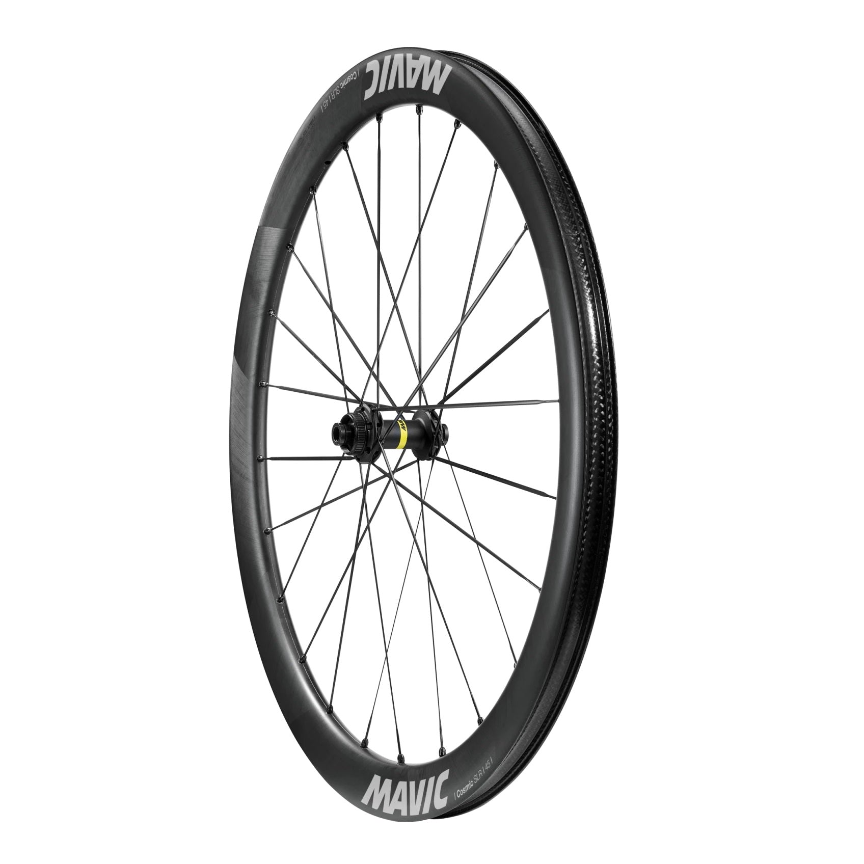 The MAVIC COSMIC SLR 45 DISC Wheelset offers exceptional performance thanks to its lightweight, 45mm-high carbon rims and UD² finish. This wheel optimizes aerodynamics and stiffness, enabling rapid acceleration and increased stability at high speeds.
