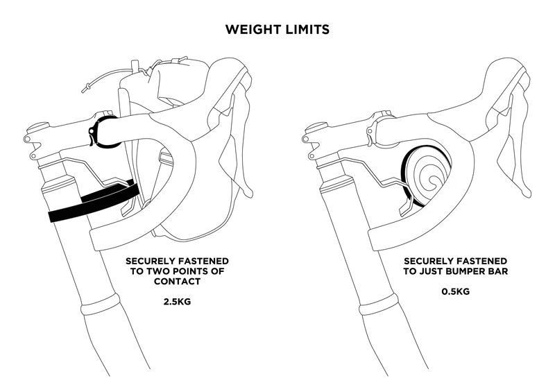 La RESTRAP BUMPER BAR 1-1/4 is a unique accessory that performs several functions; as a hard point for mounting lights, while also acting as a spacer for the range of handlebar panniers, pushing them up and away from the front wheel. It's ideal for smaller bikes with low ride height, or where clearance between handlebars and tires is limited.