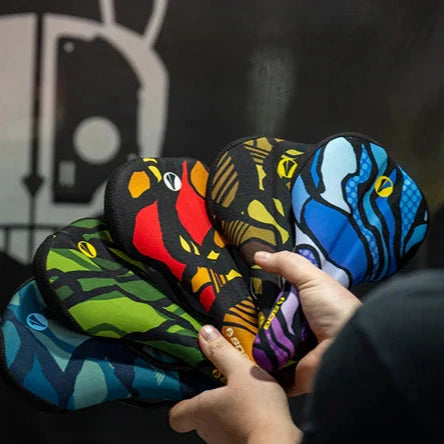 The exclusive collection Terra Firma transforms the saddle SDG Bel-Air V3 into a functional work of art, thanks to a unique collaboration with Johan Johnstona renowned artist and mountain bike enthusiast, founder of Hasie & The Robots. Inspired by traditional camouflage, the design incorporates a modern artistic touch and vibrant colors that enhance your bike with style.
