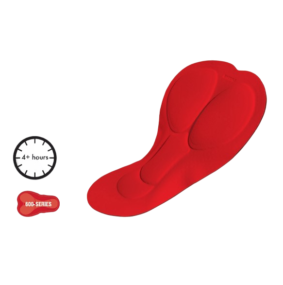 600 Series pad (4h+ outings) with Continuously Variable Profile (CVP) technology, adapted to the female form;
