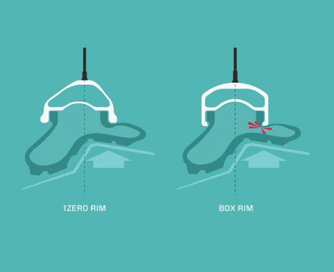 Finned rim top provides a smooth surface for the tire, reducing the risk of pinch flats after a rocky impact